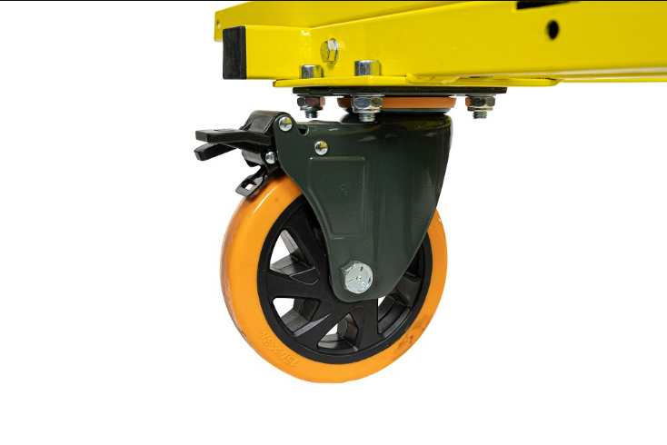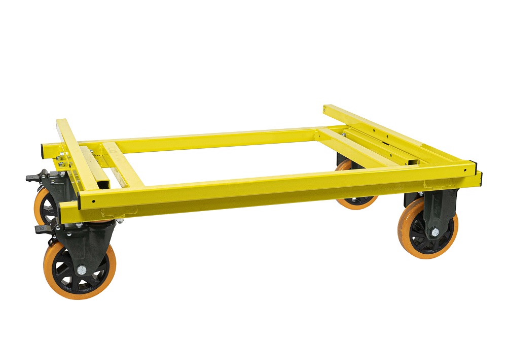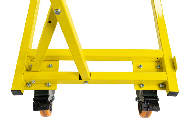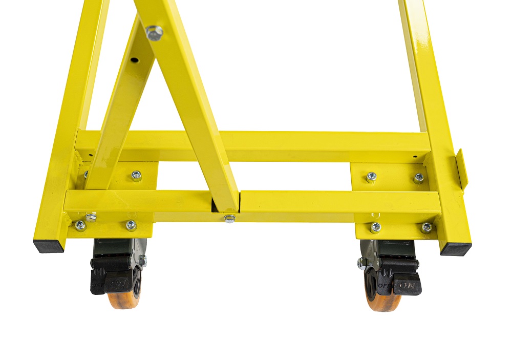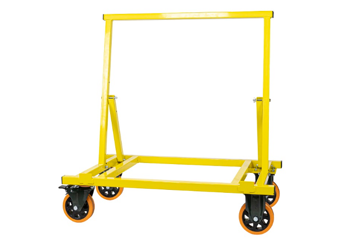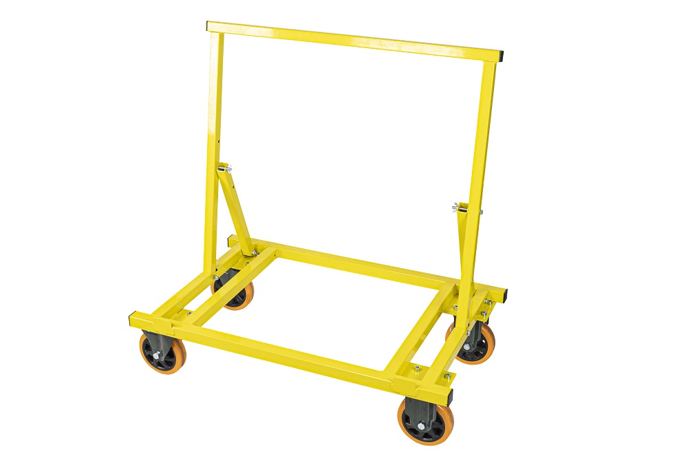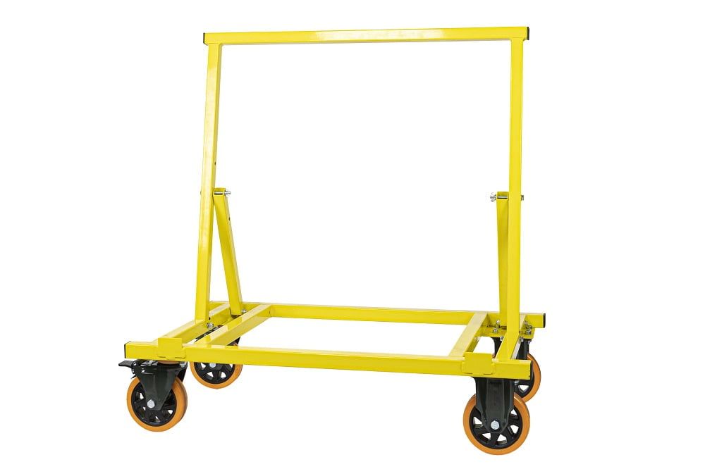Trolley for ergonomic and safe transport of your boards. 2 wheels and two caster wheels with brakes Ø 160 mm. Rack is foldable, so the trolley can easily be transported.
