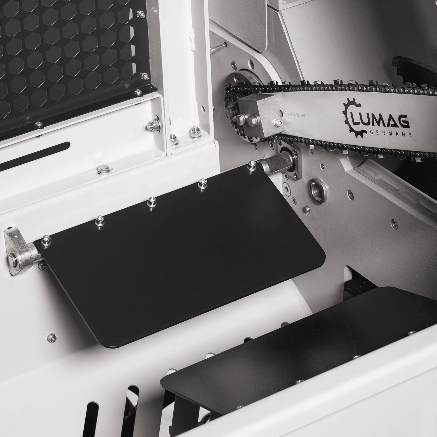 Lumag’s latest innovation, the trap door system over the splitter, is a unique feature that minimizes the number of “tumbled” logs that can otherwise disrupt processing. This improvement reduces downtime by ensuring that logs are consistently directed towards the splitter, maintaining a smooth, uninterrupted workflow. The SSA400HGPROS allows users to maintain a high rate of production with fewer interruptions, enhancing overall efficiency and ease of use.