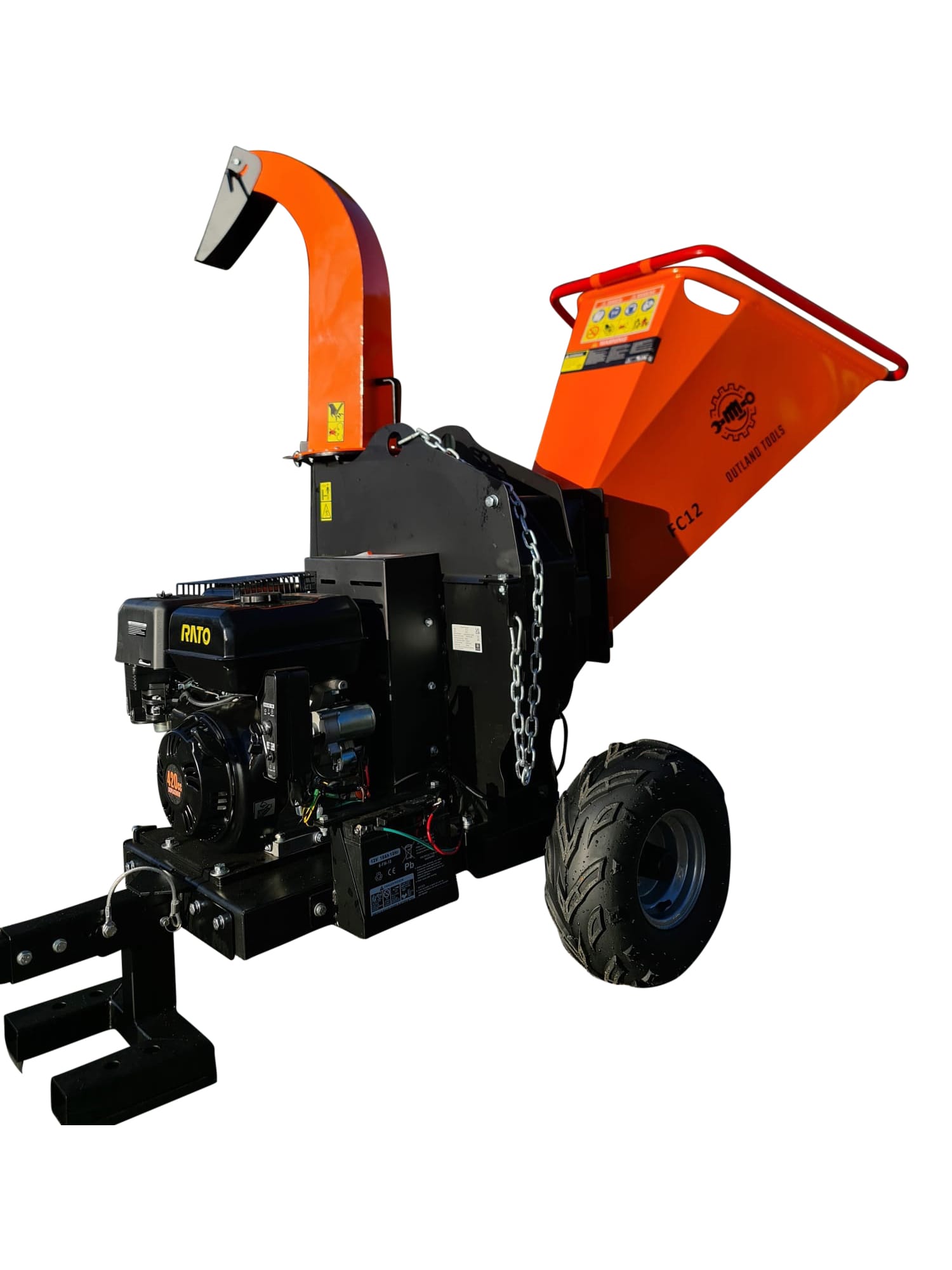 The Lumag Outland Tools FC12 Wood chipper shredder is fitted with a powerful and reliable RATO 420cc electric start 4 stoke overhead valve engine. You will find this engine easy to start and very reliable and with 15 HP its more than powerful enough to get the job done.