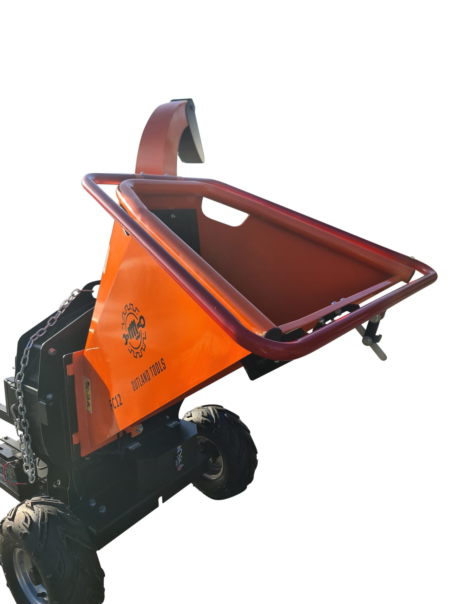 The Outland Tools FC12 Wood Chipper is designed to be easy to move around. The intake hopper is fitted with handles allowing you to tilt the chipper back on its large pneumatic tyres and push the machine around your garden with relative ease. This model is also fitted with a handy tow bar further easing movment around your property. (Not for road tow)